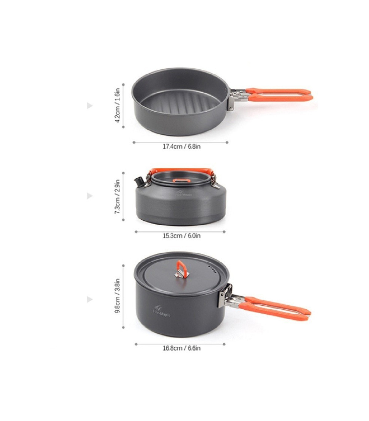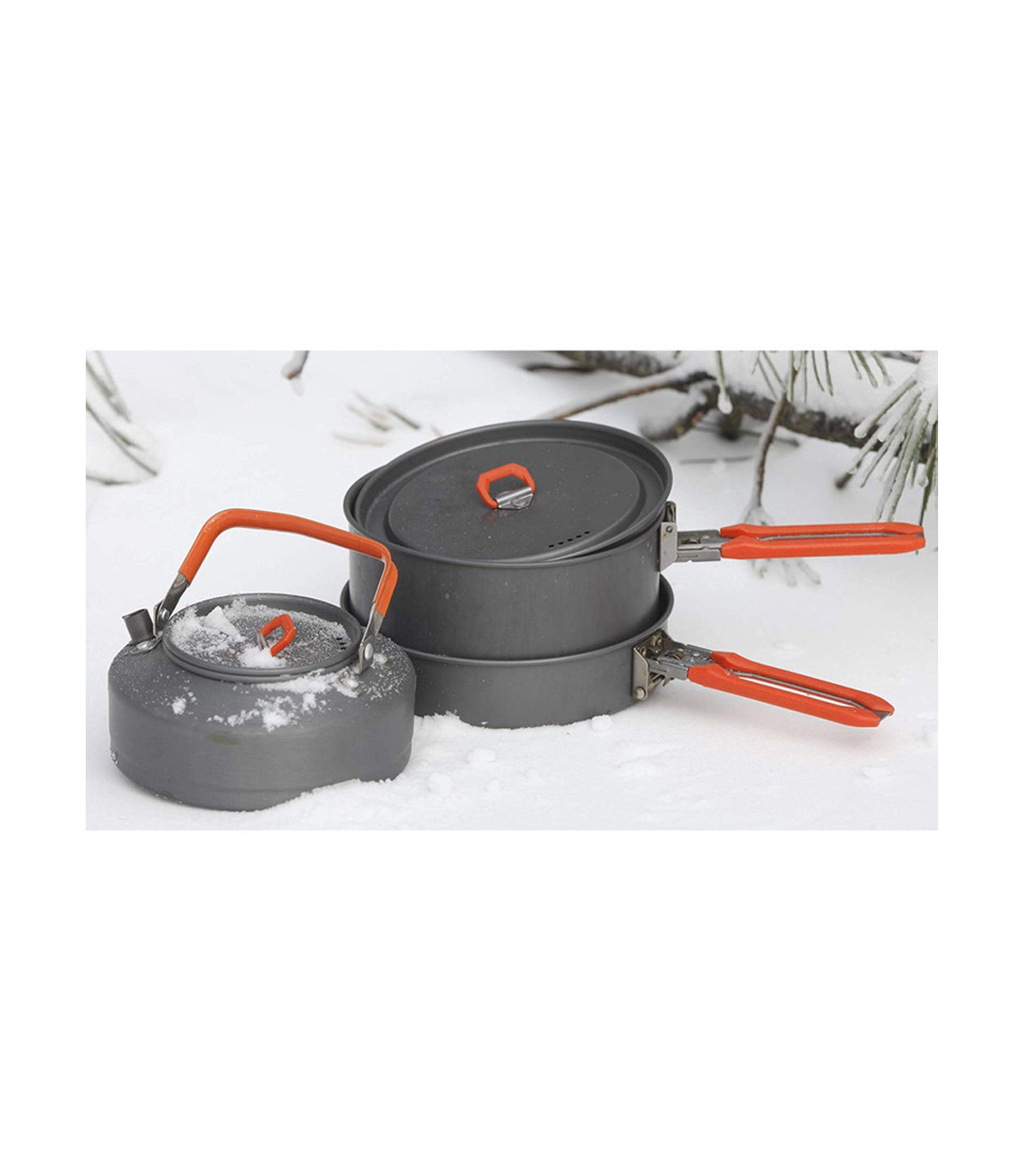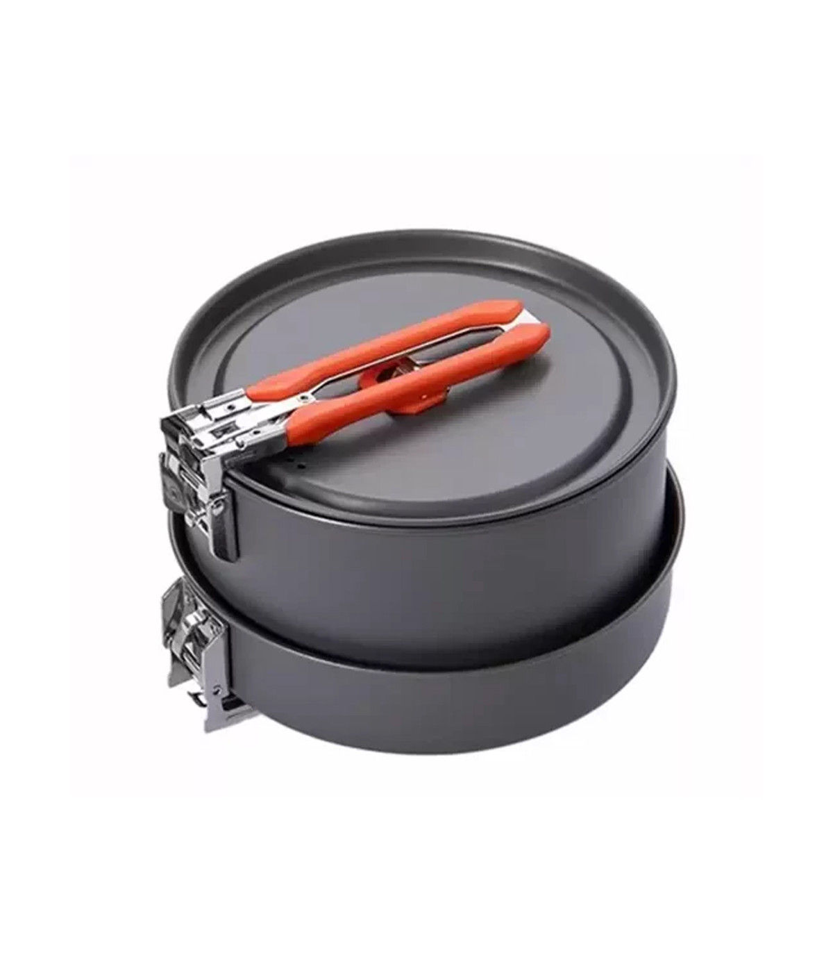 - دستههای قابلمه و ماهیتابه از جنس فلز با روکش نسوز بوده و قابلیت تاشدن دارند تا فضای کمتری اشغال شود