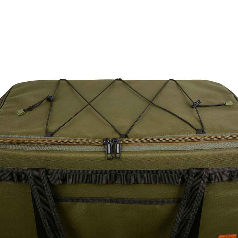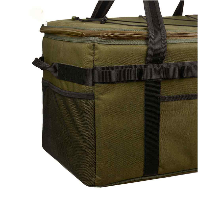 دستههای متعدد در اطراف کیف امکان حمل دو نفره را فراهم میکنند، و بندهای بیرونی روی درب به شما اجازه میدهند وسایل سبک را به راحتی ببندید. جیبهای توری جانبی برای دسترسی سریع به لوازم ضروری طراحی شدهاند.