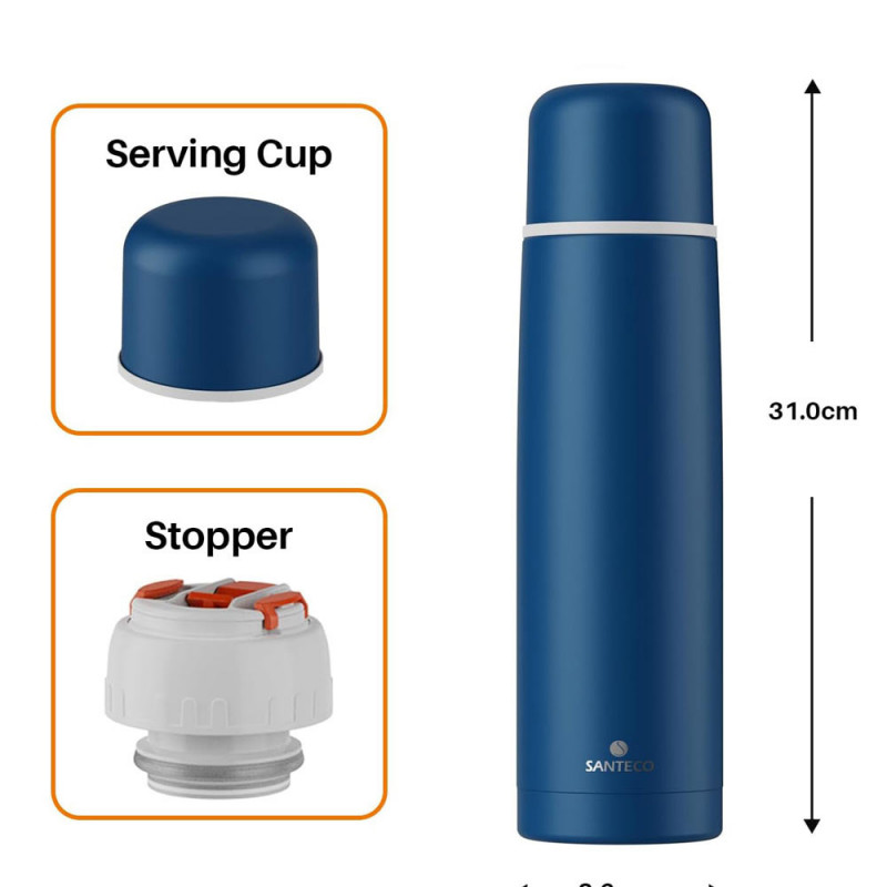 فلاسک SANTECO مدل Viseo با استفاده از استیل 18/8 و مواد کاملاً بدون BPA ساخته شده تا سلامت مصرفکننده تضمین شود. طراحی کلاسیک، وزن مناسب، بدنه مقاوم و توانایی عالی در حفظ دما، این فلاسک را به گزینهای ایدهآل برای استفاده روزمره، سفر، محل کار و طبیعتگردی تبدیل کرده است.